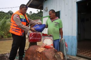 Dalam kegiatan peninjauan tersebut, Kapolres Malinau Akbp Reza Pahlevi, S.I.K. memberikan bantuan berupa paket sembako kepada warga yang terdampak banjir akibat curah hujan yang tinggi dan menyebabkan Sungai Malinau dan Sungai Sembuak Warok meluap di beberapa Kecamatan di Kabupaten Malinau.