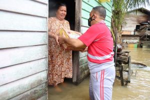 Sejumlah paket sembako dibagikan oleh Kapolres Malinau Akbp Reza Pahlevi, S.I.K. kepada masyarakat yang membutuhkan yang diberikan secara Door To Door di Desa Kaliamok Kecamatan Malinau Utara Kabupaten Malinau yang saat dikunjungi lokasi tersebut terendam banjir akibat curah hujan yang tinggi, Jum’at (28/1).