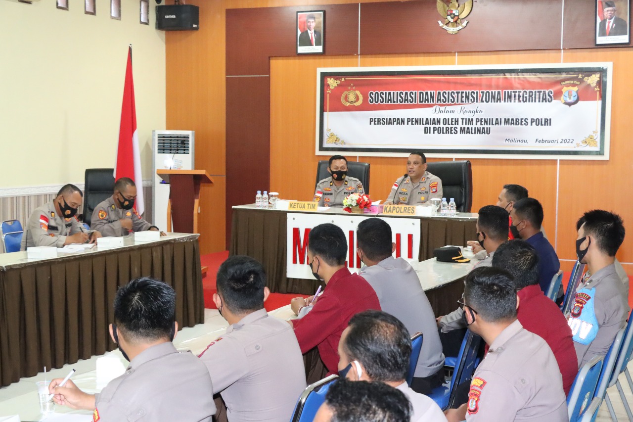 Malinau – Sosialisasi dan Asistensi ZI (Zona Integritas) Pembangunan Zona Integritas dalam rangka menuju Wilayah Bebas Korupsi (WBK) dan Wilayah Birokrasi Bersih dan Melayani (WBBM) di Polres Malinau, Kabag RBP (Reformasi Birokrasi Polri) Rorena Polda Kaltara Kompol Eko Nugroho S.I.K., melaksanakan kunjungan kerja di Polres Malinau.