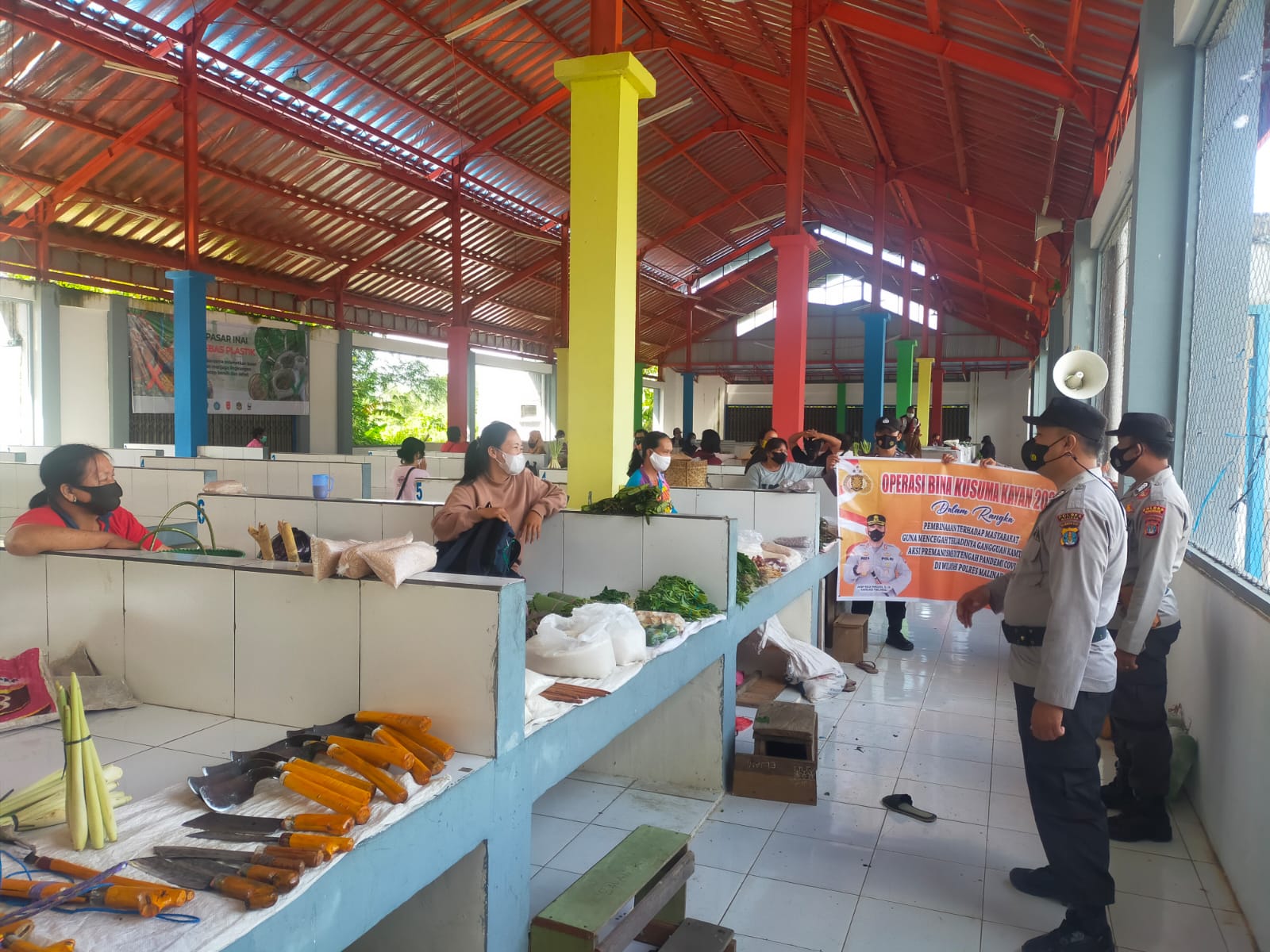 Malinau – Kasatgas Preemtif serta Kasatgas Preventif beserta Anggota Ops Bina Kusuma Kayan Polres Malinau, Melaksanakan kegiatan penyuluhan terkait dengan siskamtibmas, dan penyakit masyarakat (Pekat), Di Pasar Inai, Perbankan dan Perkantoran. (22/03).