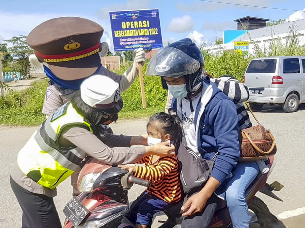 “Kami juga memberikan masker bagi masyarakat dan anak-anak yang di jumpai saat kegiatan berlangsung tidak memakai masker, kemudian selain edukasi tentang tertib berlalu lintas kita juga mengajak masyarakat atau pengguna jalan untuk melaksanakan vaksinasi,†terangnya