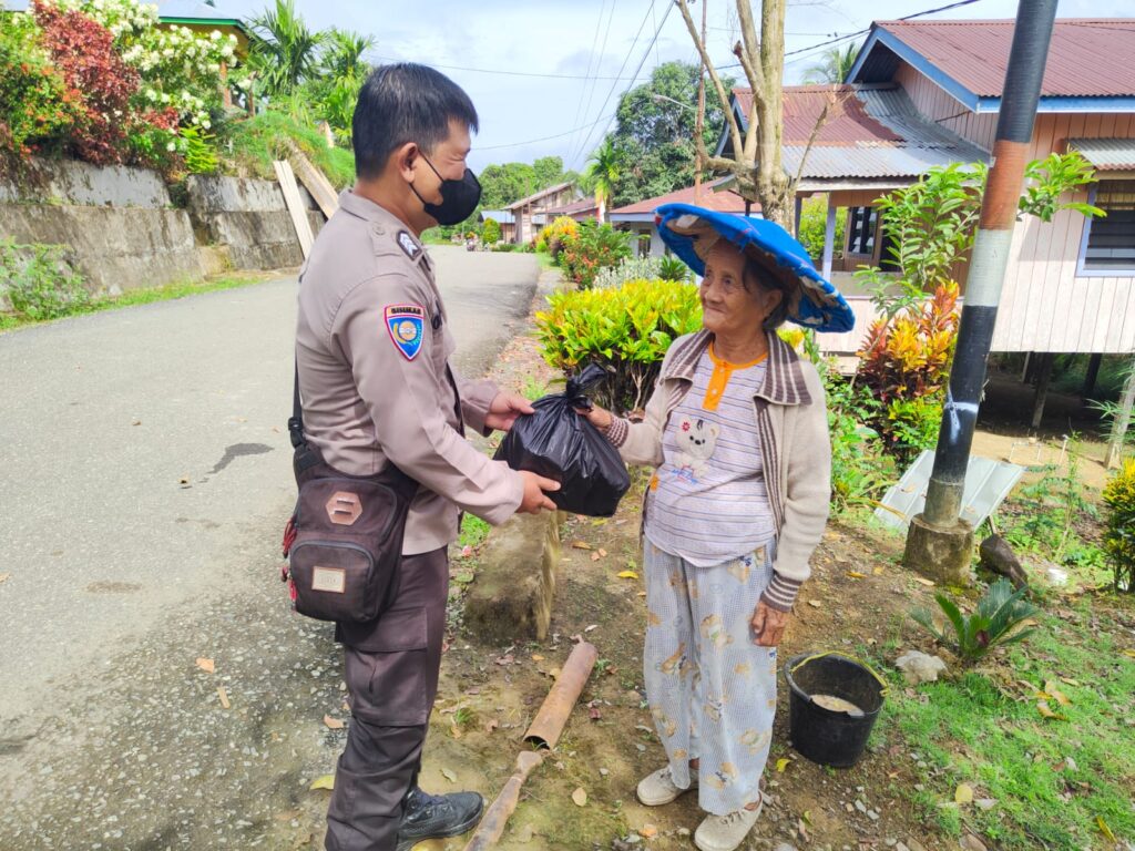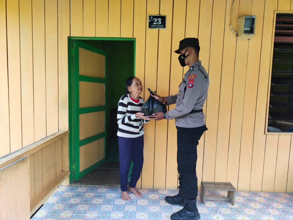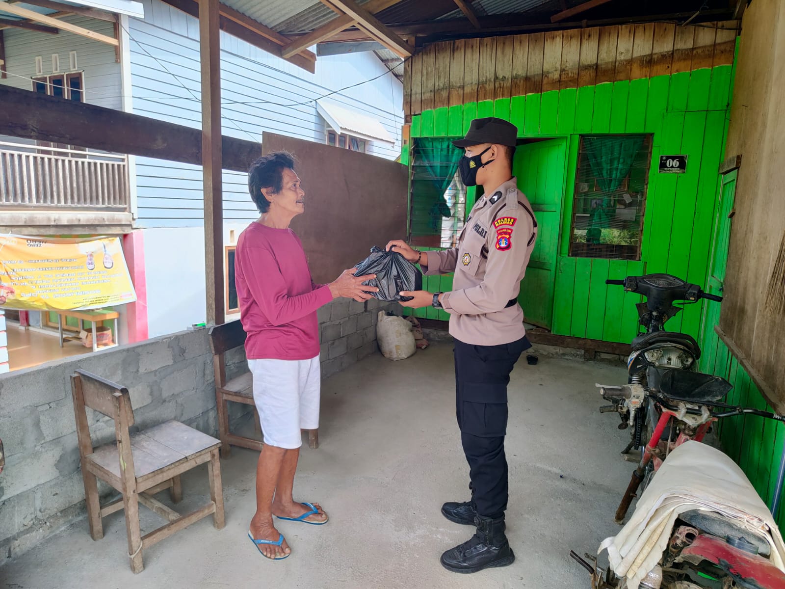 Personel Polsek Membagikan Sembako kepada Masyarakat/lansia, pada Minggu (31/7). kegiatan ini dimaksutkan untuk meringankan beban masyarakat apalagi dikala Pandemi saat ini.
