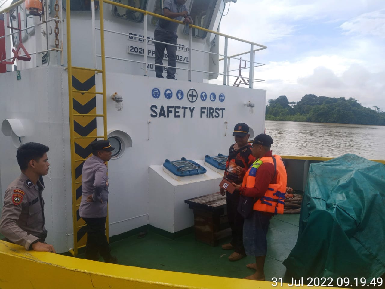 Personel Polres Malinau Bersama Tim Sar Brimob Kompi 4 Batalyon A Pelopor, Polsek Malinau Utara, BPBD, Tagana dan Masyarakat Bersama-sama Menyisir Sungai Malinau, lokasi Jatuhnya Anak Buah Kapal (ABK) di Pelabuhan Kelapis, Malinau Utara. Pada Sabtu Malam, (30/7/2022). Hingga Siang ini Korban Masih dilakukan Pencarian. Minggu (31/07/2022).