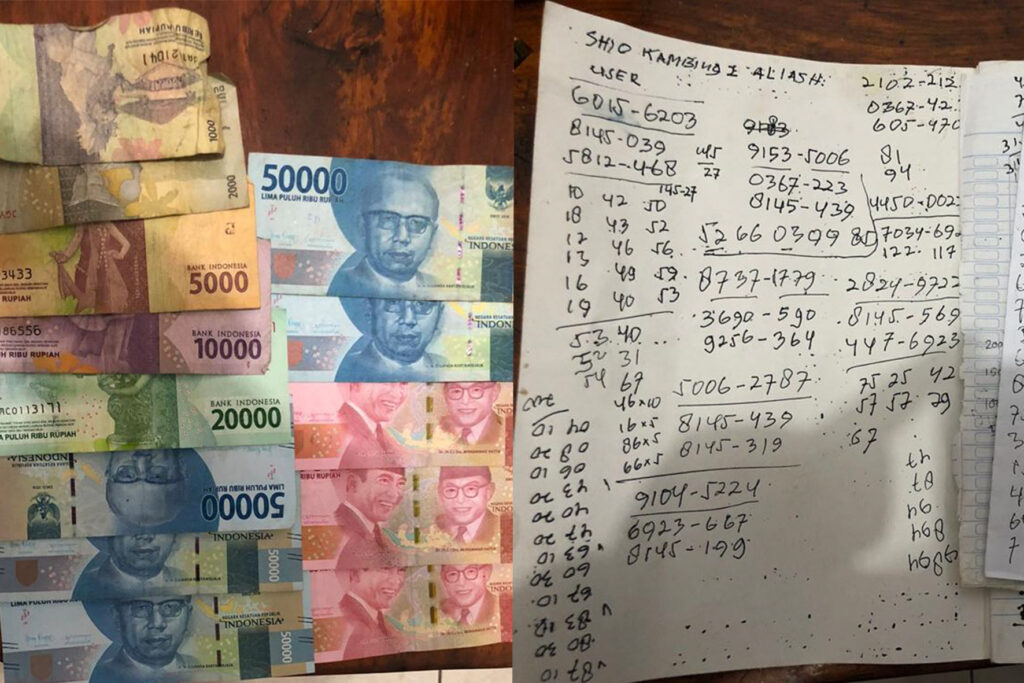 Setelah beberapa saat, tim jatanras melakukan penyelidikan ke rumah AH, saat dilakukan penggeledahan di kediaman AH, personel Sat Reskrim Polres Malinau melalui tim jatanras menemukan sejumlah barang bukti berupa 1 buah handphone merk Samsung Galaxy A11, 3 akun togel dengan shio kambing, abu togel dan joni togel dan rekapan nomor togel pesanan serta uang tunai senilai Rp. 588.000 ribu.