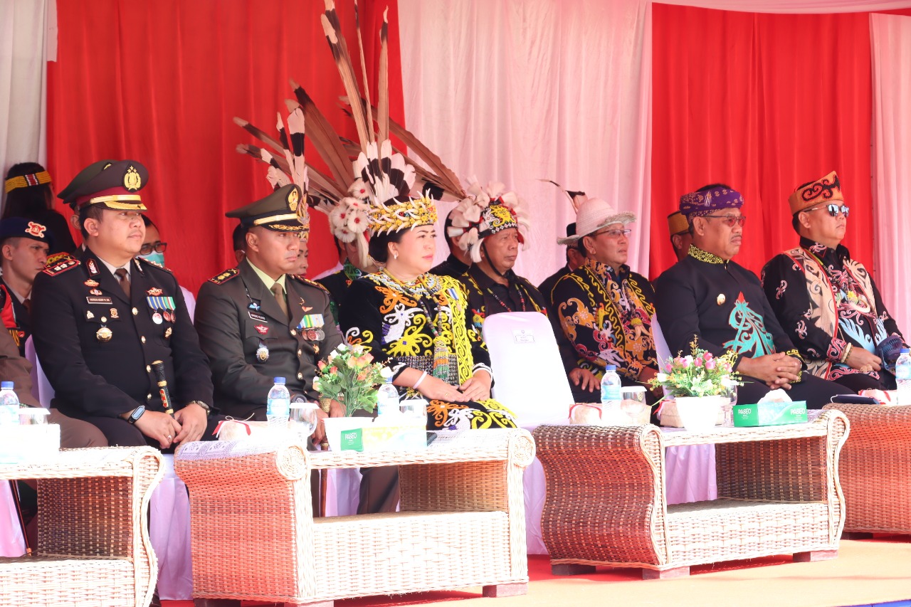 Kapolres Malinau AKBP Andreas Deddy Wijaya, S.I.K., beserta Ketua Bhayangkari Cabang Malinau Ny. Dewi Andreas dan Forkopimda Malinau menghadiri Upacara Puncak Kegiatan HUT Kemerdekaan Republik Indonesia Ke-77 Tahun 2022 yang dipusatkan di Desa Loreh, Kecamatan Malinau Selatan, Kabupaten Malinau, Rabu (17/8).