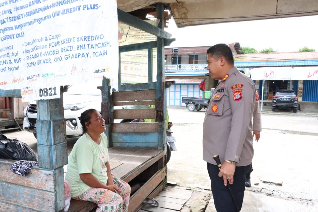 Kapolres Malinau AKBP Andreas Deddy Wijaya, S.I.K.di Hari libur, Minggu (27/11/2022). melakukan kunjungan ke pasar pelangi Malinau Kota menyapa para pedagang Sayur. dengan didampingi oleh Kabag Ren Polres Malinau.