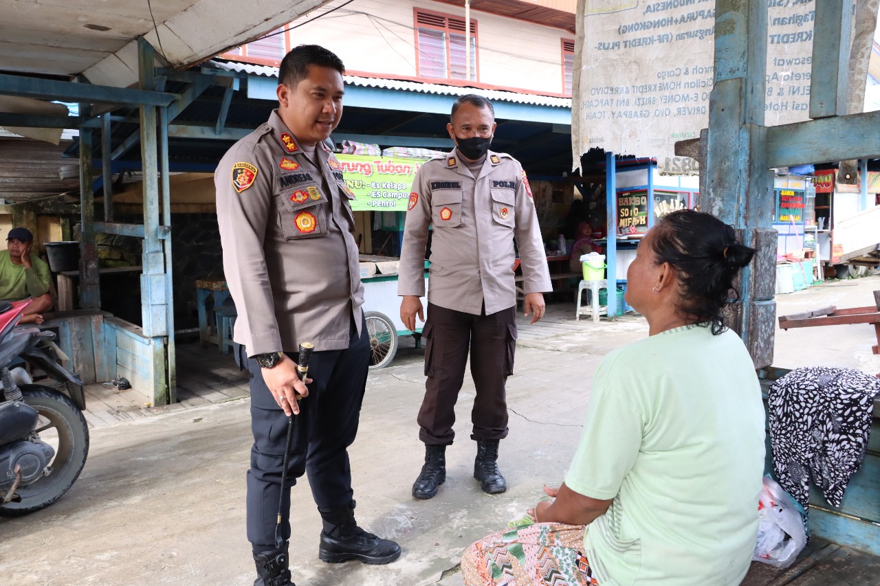 Saat berada di Pasar Pelangi Malinau Kota, Kapolres Malinau berdialog dengan sejumlah pedagang, sebagai satu wujud mengenalkan diri kepada warga masyarakat.