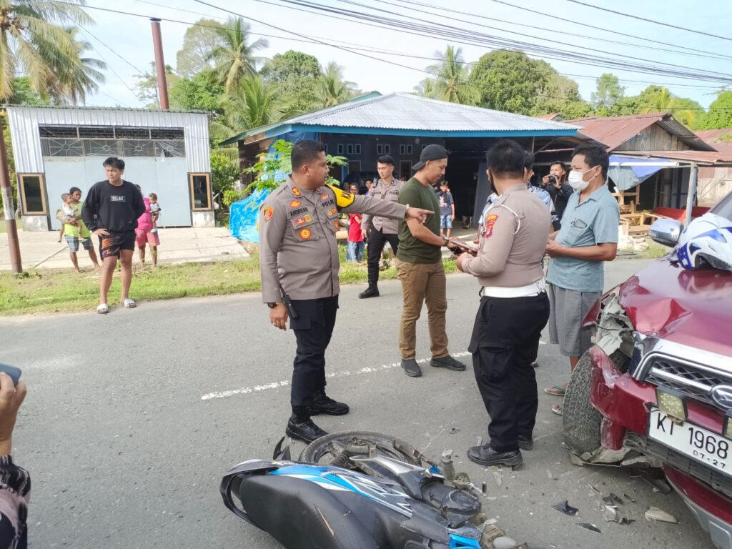 Malinau – Peristiwa Kecelakaan Lalu Lintas (Laka Lantas) yang terjadi sekira pukul 15.40 Wita di Jalan Tanjung Lapang (Depan Lapangan Borneo) Desa Tanjung Lapang, Kecamatan Malinau Barat, Kabupaten Malinau melibatkan antara Mobil Daihatsu Terios Warna Merah dengan No. Pol. KT 1968 GK dengan Sepeda Motor Honda Supra X warna Biru Hitam No. Pol. KT 4961 FT, Selasa (27/12).
