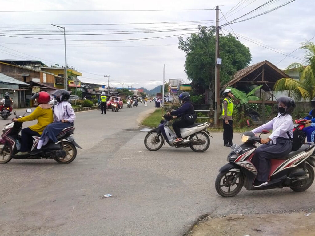 Malinau – Berikan pelayanan prima kepada masyarakat, Kepolisian Resor (Polres) Malinau melalui jajaran Satuan Lalulintas (Sat Lantas) melaksanakan kegiatan rutin di pagi hari yaitu pengaturan lalu lintas dalam mengantisipasi kegiatan masyarakat dan menjamin arus lalu lintas yang lancar dan kondusif serta Kamtibmas yang aman disaat masyarakat memulai aktifitas di pagi hari, Selasa (10/1).