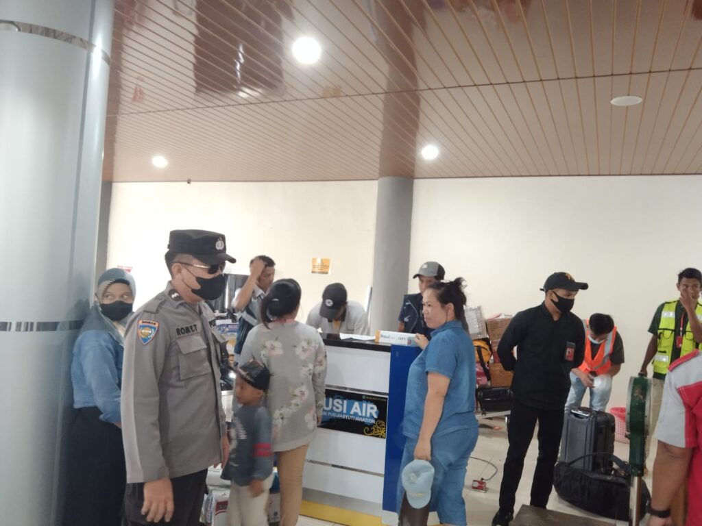 MALINAU-Kepala Pos Pelayanan (Kaposyan) Ops Ketupat Kayan 2023 Bandara Ra Bessing Malinau, hampiri  para penumpang, sampaikan himbauan untuk selalu berhati-hati dan waspada terhadap barang bawaan guna terciptanya rasa aman dan nyaman dalam perjalanan.