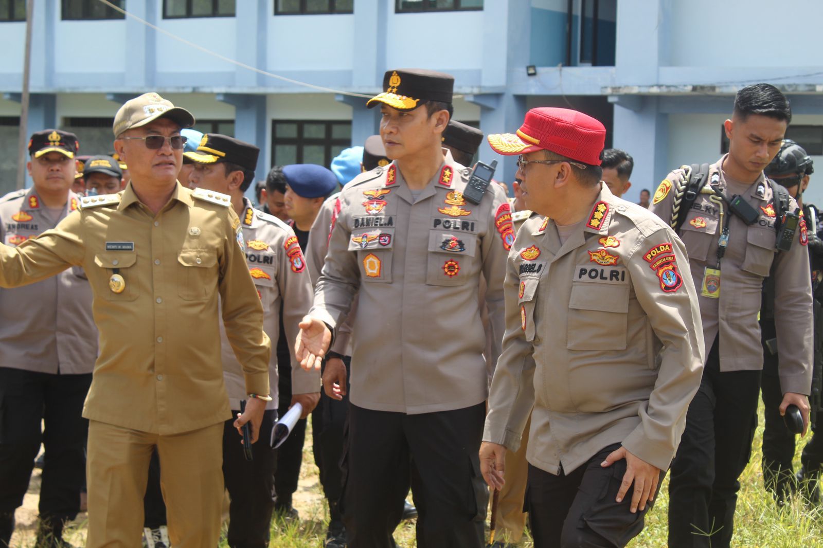 Malinau – Kepala Kepolisian Daerah Kalimantan Utara (Kapolda Kaltara) Irjen Pol Daniel Adityajaya, S.H., S.I.K., M.Si, melaksanakan kunjungan di Kabupaten Malinau bersama Wakil Kepala Kepolisian Daerah Kalimantan Utara (Wakapolda Kaltara) Brigjen Pol Kasmudi, S.I.K., serta PJU Polda Kaltara yang disambut langsung Bupati Malinau Wempi W. Mawa, S.E., M.H., dan Kapolres Malinau AKBP Andreas Deddy Wijaya, S.I.K., untuk meninjau secara langsung bangunan Sekolah Polisi Negara (SPN) Polda Kaltara yang terletak di Jalan Swadaya, Desa Tanjung Lapang, Kecamatan Malinau Barat, Kabupaten Malinau, Selasa (9/5).