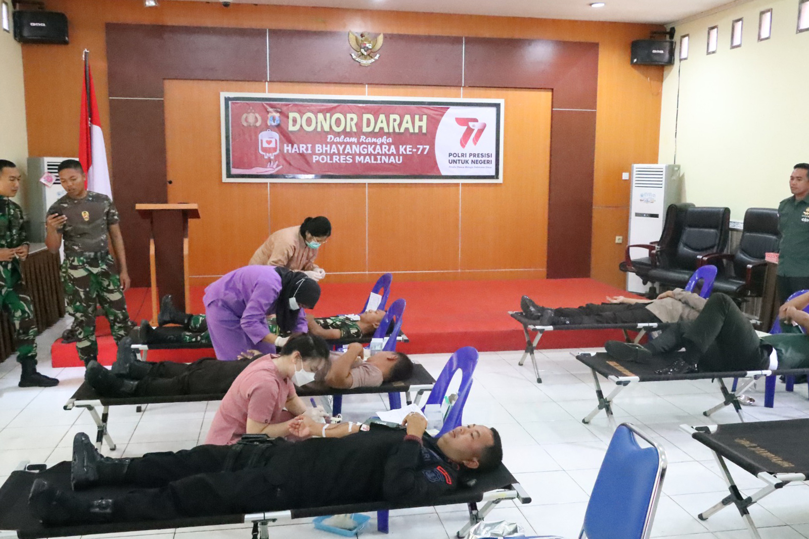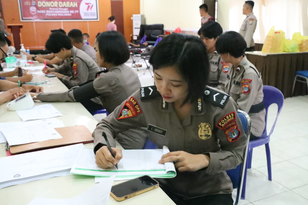 Kapolres Malinau AKBP Andreas Deddy Wijaya, S.I.K., dalam penyampaiannya mengatakan saat ini Polres Malinau bersama dengan Stakeholder terkait yaitu dengan PMI Kabupaten Malinau dan juga dari Dinas Kesehatan melaksanakan Bakti Kesehatan donor darah dalam rangka menyambuat Hari Bhayangkara Ke-77 sebagai bentuk kepedulian Polri terhadap sesama khususnya warga masyarakat yang membutuhkan darah.