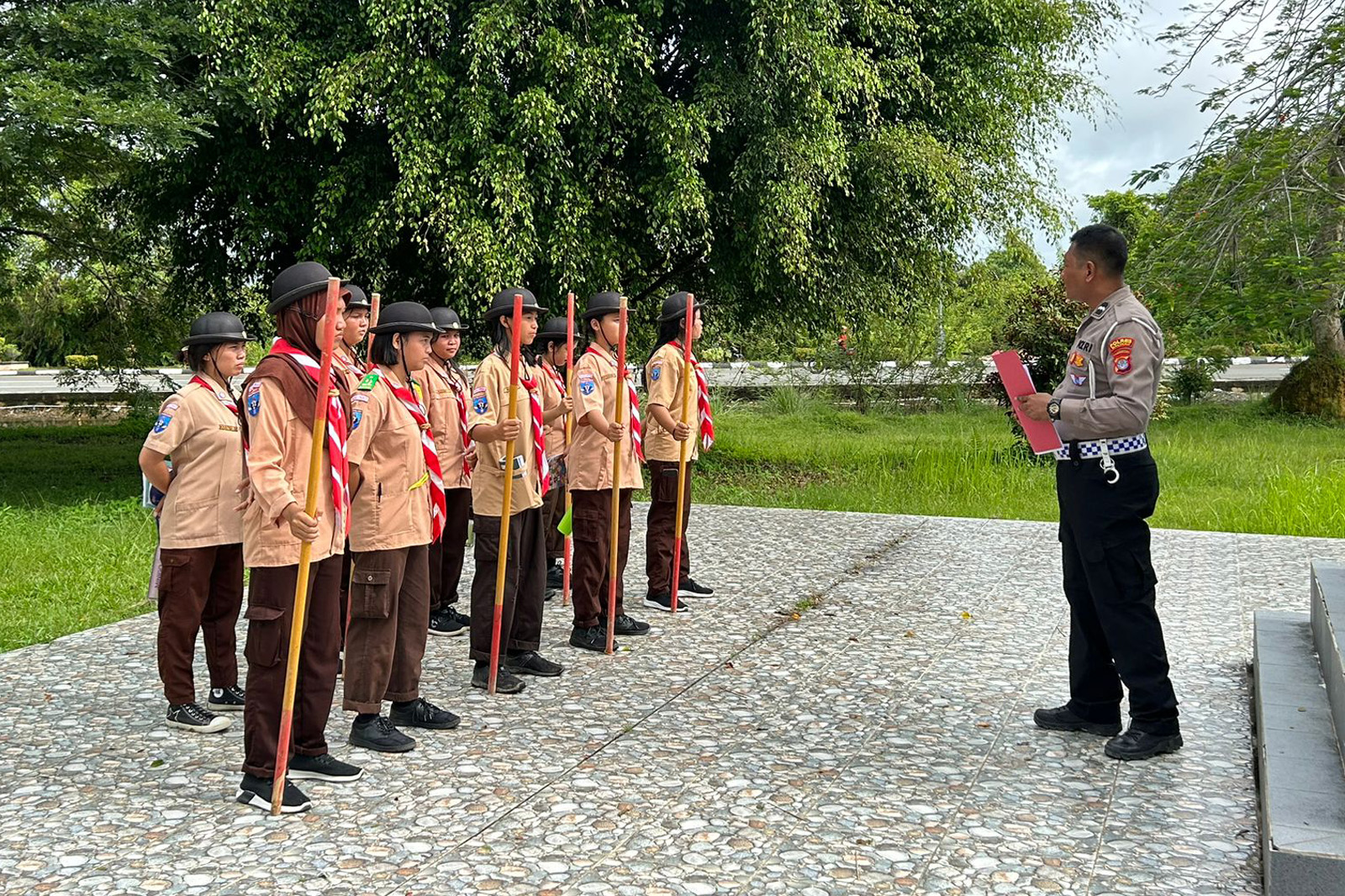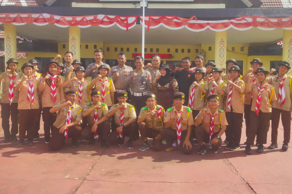 Gelar Long March, Unit Kamsel Ditlantas Polda Kaltara dan Jajaran Polres Malinau Berikan Krida Lantas Kepada Saka Bhayangkara