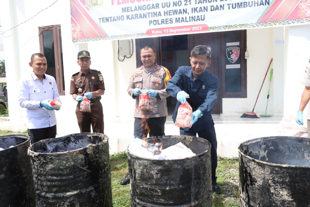 Kepala Kepolisian Resor (Kapolres) Malinau AKBP Heru Eko Wibowo, S.H., S.I.K., M.H., melalui Kasat Reskrim Polres Malinau IPTU Reginald Yuniawan Sujono, S.Tr.K., S.I.K., M.H., menjelaskan bahwa pemusnahan tersebut dilakukan setelah dilakukannya penahanan daging ayam beku yang dimiliki tersangka U dan R pada hari Jum’at 28 Juli 2023 lalu karena tidak memiliki dokumen lengkap saat akan dipasarkan kepada Sdr. R yang berada di Kabupaten Malinau.