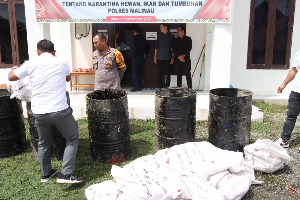 Dalam kegiatan pemusnahan barang bukti yang digelar di depan halaman Gedung Satreskrim Polres Malinau siang ini turut disaksikan dan diikuti langsung Wakapolres Malinau KOMPOL Satya Chusnur Ramadhana, S.H., Wakil Kepala Pengadilan Negeri Malinau Budi Santoso, Kasi Pidum Kejaksaan Negeri Malinau Nurhadi, Balai Karantina Kelas II Tarakan Bambang Suryono Hadi, Kasat Reskrim Polres Malinau IPTU Reginald Yuniawan Sujono, S.Tr.K., S.I.K., M.H., dan personel jajaran Satreskrim Polres Malinau.