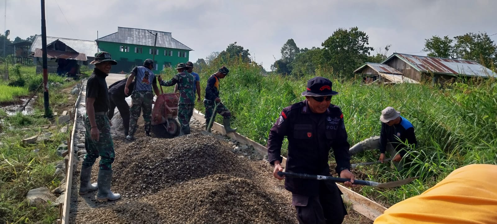 MALINAU Kalimantan Utara, – Gotong-royong merupakan salah satu falsafat leluhur kita yang harus sama-sama kita pelihara. Seperti yang dilakukan satgas TMMD Ke-118 wilayah perbatasan tahun 2023 Kodim 0910/Malinau yang sudah berjalan 18 hari mampu membangun semangat gotong-royong antara TNI dan masyarakat.
