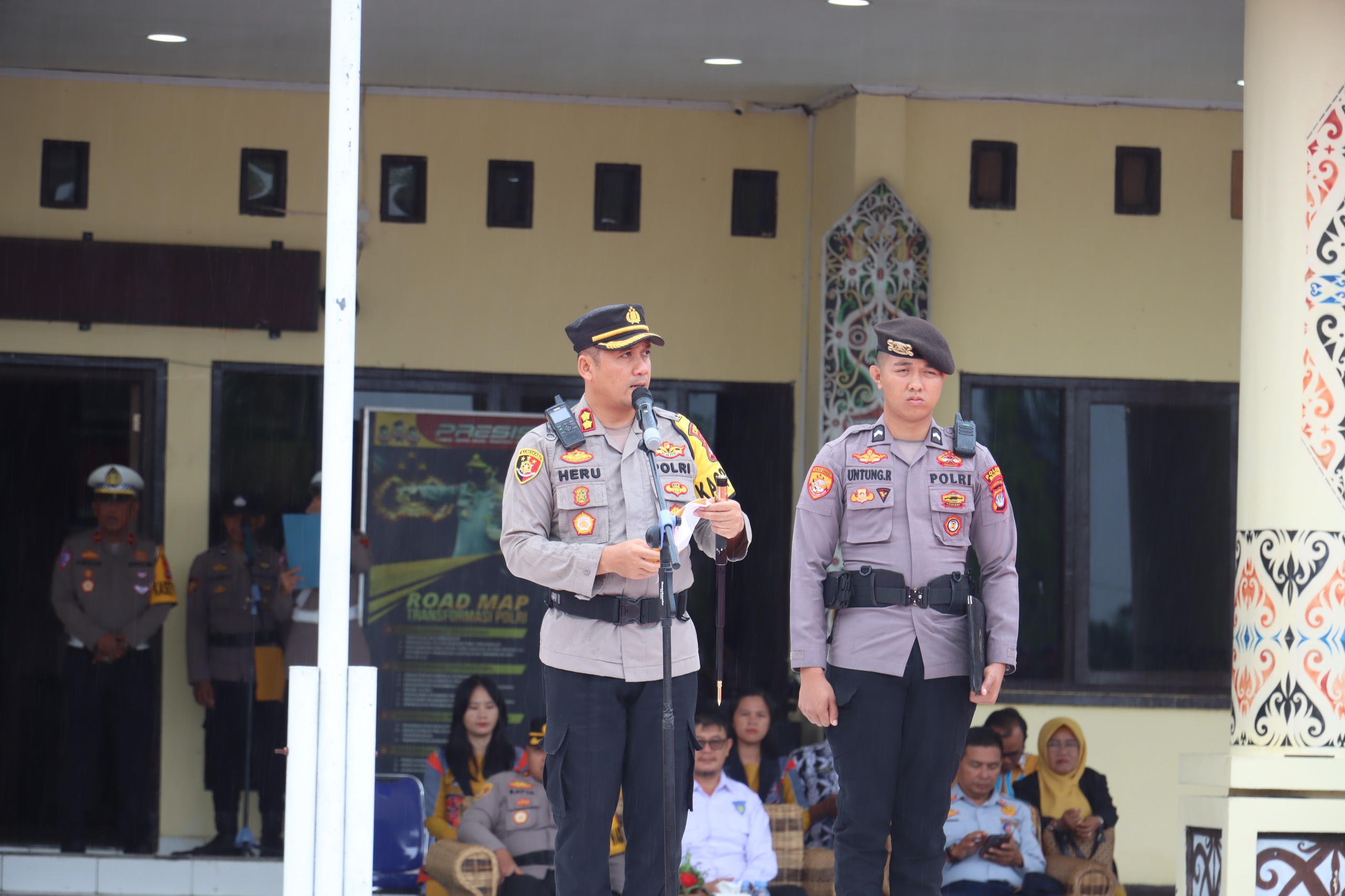 Apel Gelar Pasukan yang berlangsung di halaman Mapolres Malinau pagi ini dipimpin langsung oleh Kepala Kepolisian Resor (Kapolres) Malinau AKBP Heru Eko Wibowo, S.H., S.I.K., M.H., dan diikuti oleh personel jajaran Polres Malinau, Brimob Kompi IV Yon A Pelopor, TNI, Dishub, Satpol PP, Komunitas Otomotif dan Pelajar SMP serta SMA di Kabupaten Malinau.