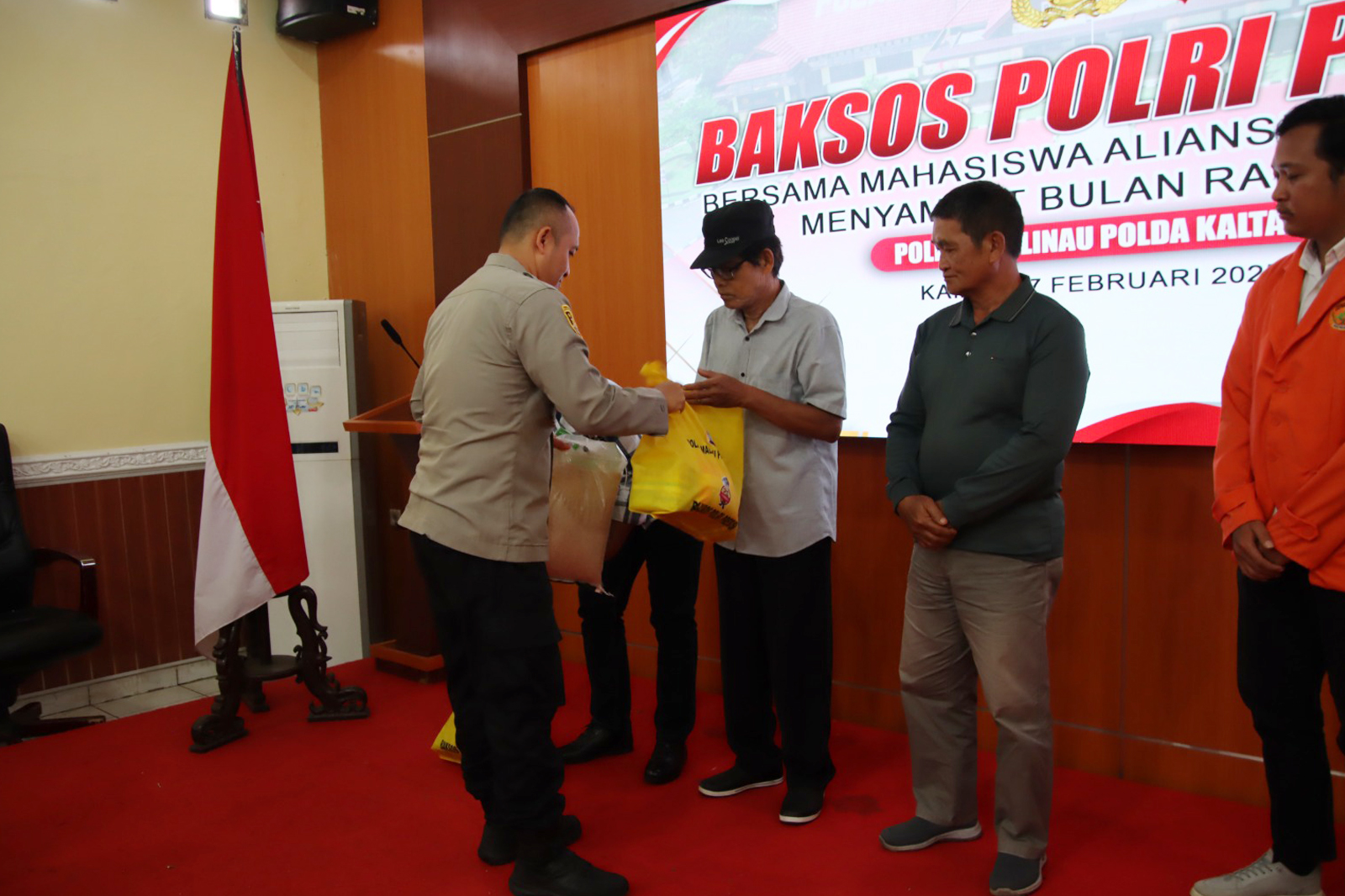 Bantuan sosial tersebut diserahkan secara simbolis oleh Kepala Kepolisian Resor (Kapolres) Malinau AKBP Heru Eko Wibowo, S.H., S.I.K., M.H., didampingi oleh jajaran pejabat utama Polres Malinau dan perwakilan mahasiswa. Paket sembako yang dibagikan berisi bahan pokok kebutuhan sehari-hari.