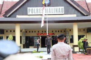 Suasana upacara berlangsung dengan penuh semangat nasionalisme dari seluruh peserta yang terdiri dari perwira, anggota Polres Malinau, serta staf jajaran lainnya.