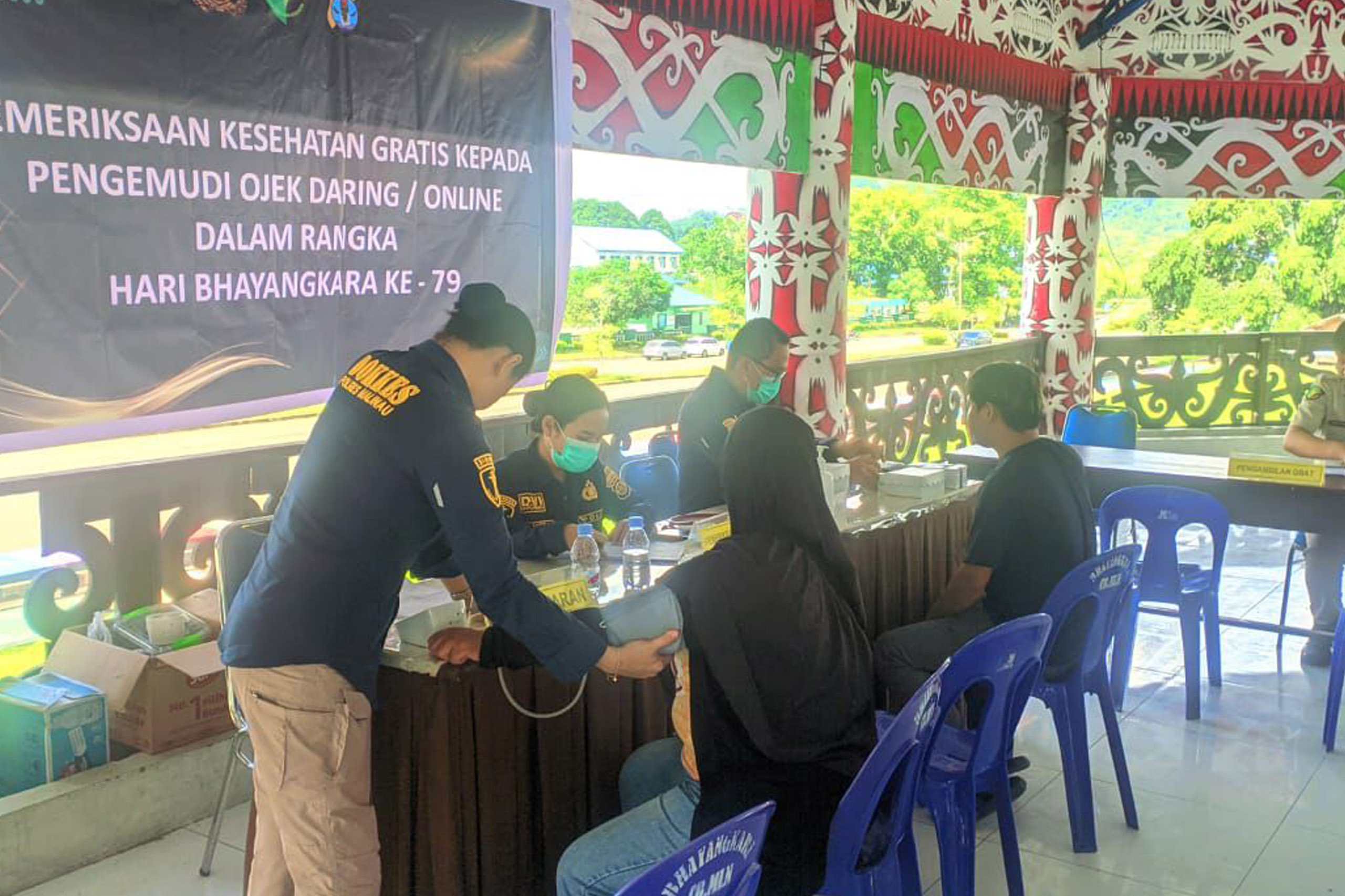 Kegiatan ini dilaksanakan di Panggung Kesenian Padan Liu Burung Kabupaten Malinau, puluhan pengemudi ojek online tampak antusias mengikuti pemeriksaan yang mencakup pengecekan tekanan darah, kadar gula darah, kolesterol, serta konsultasi kesehatan ringan oleh tim kesehatan yang disiapkan oleh Polres Malinau.