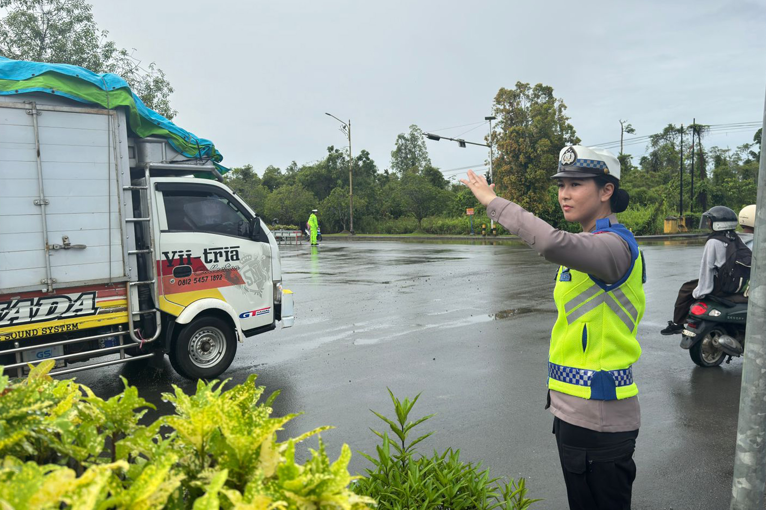 Selain mengatur arus kendaraan, petugas juga memberikan imbauan kepada pengendara agar selalu mematuhi peraturan lalu lintas, menggunakan helm, serta tidak menggunakan ponsel saat berkendara.