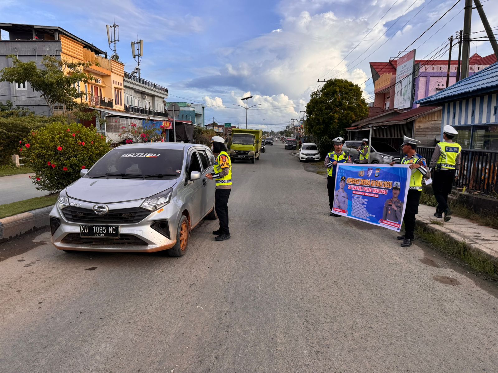 Malinau – Dalam rangka pelaksanaan Operasi Zebra 2025, Satuan Lalu Lintas Polres Malinau melaksanakan kegiatan edukasi dan sosialisasi tertib berlalu lintas kepada para pengendara di wilayah Kabupaten Malinau. Kegiatan ini dipimpin langsung oleh Kasat Lantas Polres Malinau, sebagai wujud komitmen kepolisian dalam meningkatkan kedisiplinan masyarakat serta menekan angka pelanggaran dan kecelakaan lalu lintas, Kamis (20/11) Sore.