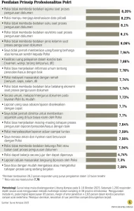 Lebih lanjut, dari seperempat publik yang mengaku pernah mengalami tindak arogansi anggota polisi atau menyaksikan perilaku tersebut, sebesar 42,1 persen di antaranya mengaku tahu bahwa anggota yang bersangkutan telah diberi sanksi hukum atau etik.